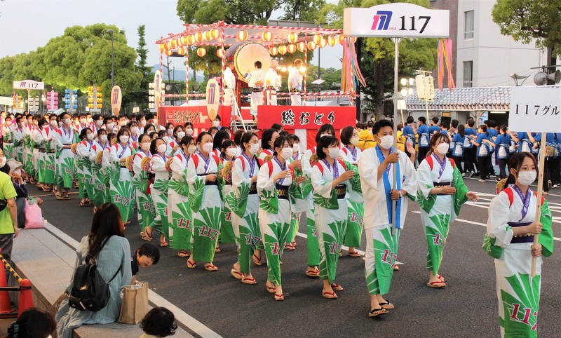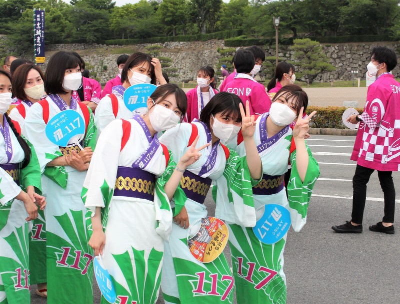 姫路お城まつり総踊りが3年ぶりに開催されました。この度はコロナ禍対応による人数制限もあり、80名で36回目の参加でした。