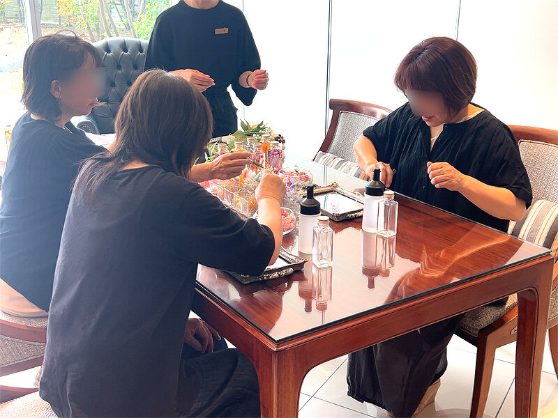 完成後は、参加者の皆さまで互いのハーバリウムを撮影し合うなど、ティータイムは和やかに歓談されていました。