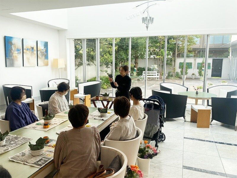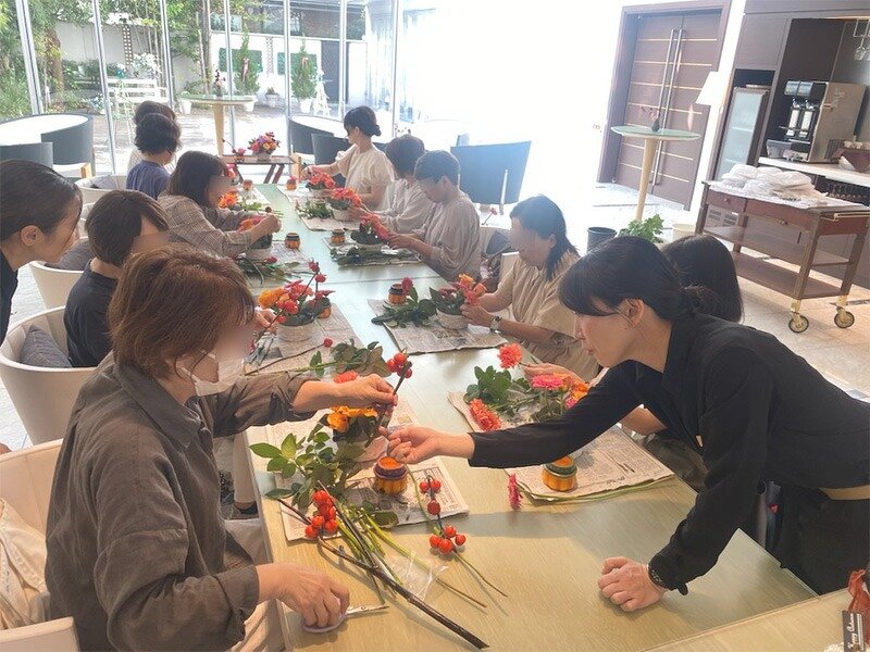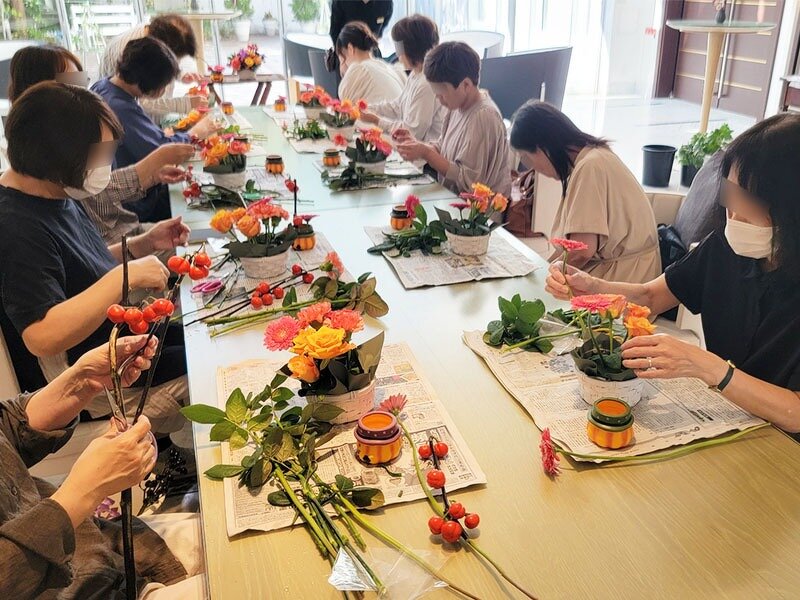 完成後は参加者様同士で互いの花籠を撮影されたり、ティータイムでは歓談を楽しまれました。