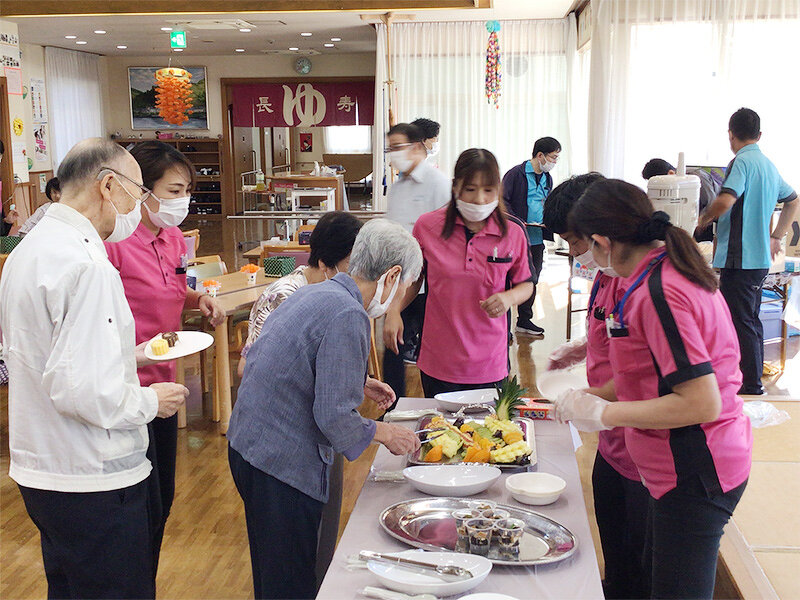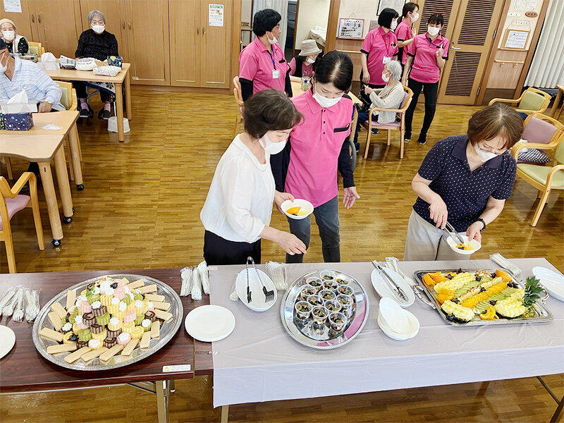 加古川エリアの小規模多機能・グループホーム・ヘルスポート・デイサービスの4施設の合同内覧会を開催し、地域の方々や居宅介護支援事業所のケアマネジャー様にご来訪頂きました。 豪華フルーツ盛りとプチケーキのバイキングや綿菓子、かき氷をご用意し、皆様には「美味しかったわ。」とご好評頂きました。 また、あっぷるのオリジナルレクの「ドロップボール」でも楽しまれました。 これからも、地域の皆様にあっぷるの事を広く知って頂ける機会をつくっていきます。