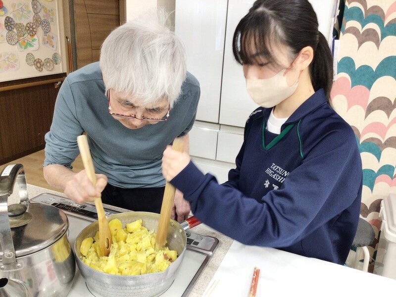 ご利用者様からは「孫より若い子と過ごせて若返った」と大笑いしたり、今ではなかなか聞けない終戦後の昔話等をして下さったりと、たくさんの交流が持てました。