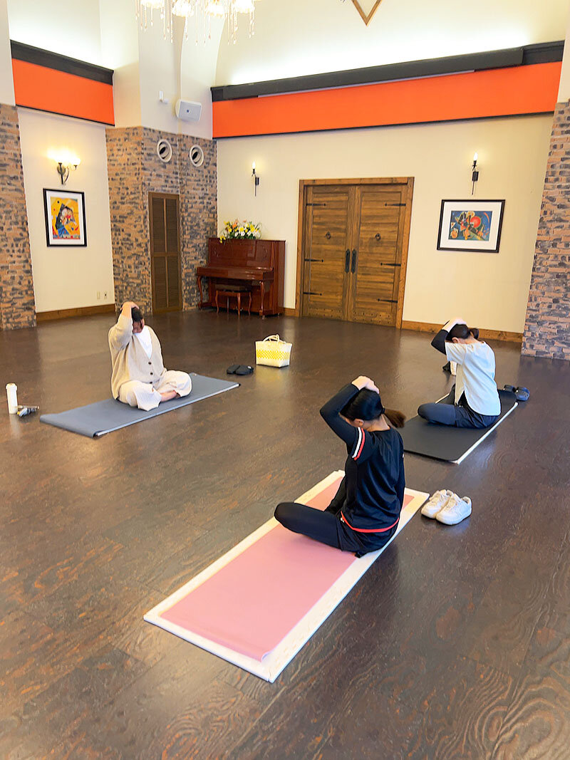 club117サークル「ヨガ教室」をラヴィーナ和歌山で開催しました。 講師の、117カード提携加盟店「studio Laule’a」様からヨガの基礎となるポーズなどをレクチャーしていただき、ゆっくりとポーズを確認しながら、リラックスした状態でヨガを楽しんでいただきました。