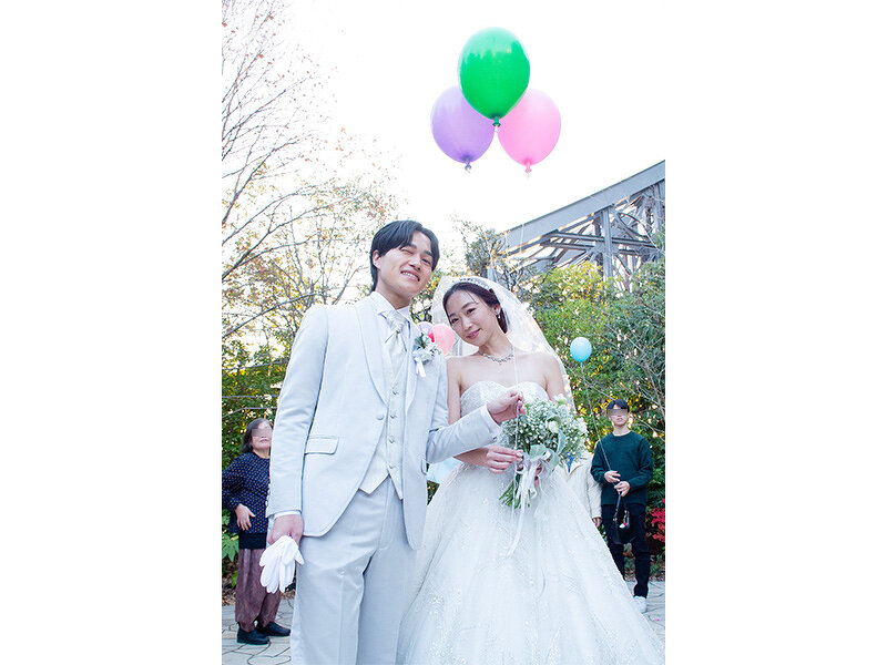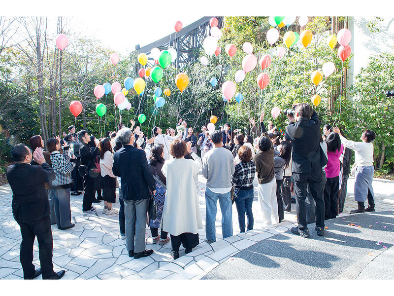 挙式シミュレーションではゲスト目線で参加してもらうフラワーシャワーやバルーンリリースのガーデンモニター体験をしていただきました。