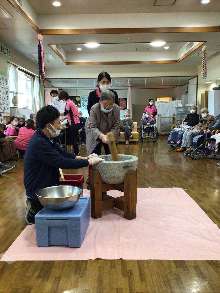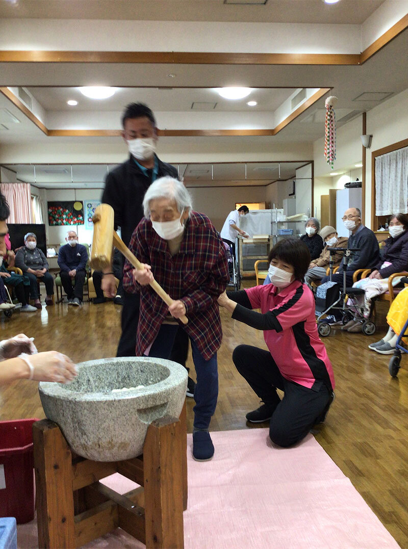 あっぷるデイサービス加古川にて小規模多機能・グループホーム・ヘルスポート・デイサービスの4施設合同で餅つき大会を開催しました。 蒸したてのもち米の香りと、「よいしょお」の掛け声の中、皆様、満面の笑みで挑戦されていました。つきたてのお餅は鏡餅にして各施設にてお飾りとして使用します。これで良い新年をお迎え出来ますね。 来年もどうぞよろしくお願い申し上げます。