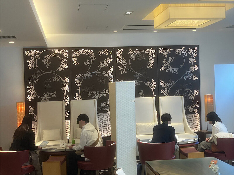 従来と進行の形式を変え、ラウンジのソファに座ってお相手の方とじっくりお話するスタイルで行いました。まずは、それぞれ8分ずつ互いのプロフィールカードを用いて質問や自分自身をアピールし、気になる相手をインプレッションカードに記入してスイーツタイム。その後5分ずつ、再度トークタイム。1回目の話の続きやスタッフが用意した「トークテーマくじ」を使うなど、限られた時間の中で互いの事をより知っていただきました。