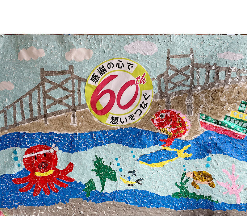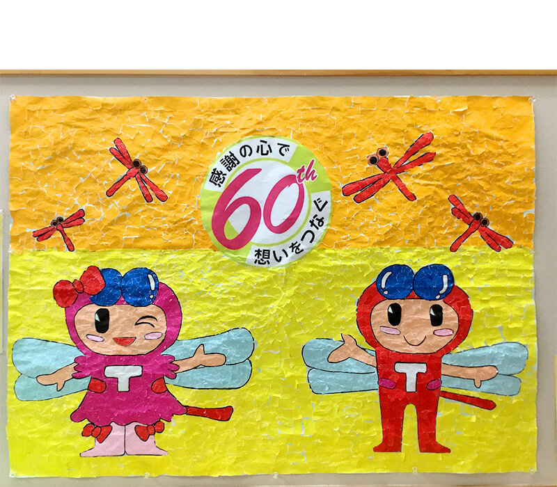 令和8年1月17日で、117グループは創立60周年を迎えました。 60周年を記念して、あっぷるデイサービス5部署・あっぷる介護付有料老人ホームにて、利用者様と共に壁画制作を行いました。 各部署がそれぞれの特色を活かし、模造紙を見事に彩ることができました。 完成した作品は施設内に掲示されていますので、来館の際はぜひご覧ください。