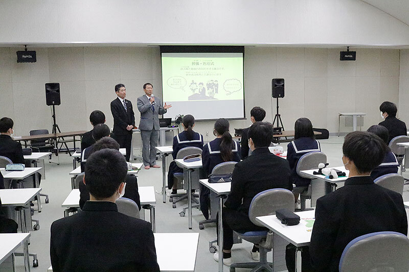 到着後、教室に向かう途中ですれ違う生徒の皆さんから「こんにちは!」と明るく挨拶してもらい、学校の良き伝統と校風を感じました。
